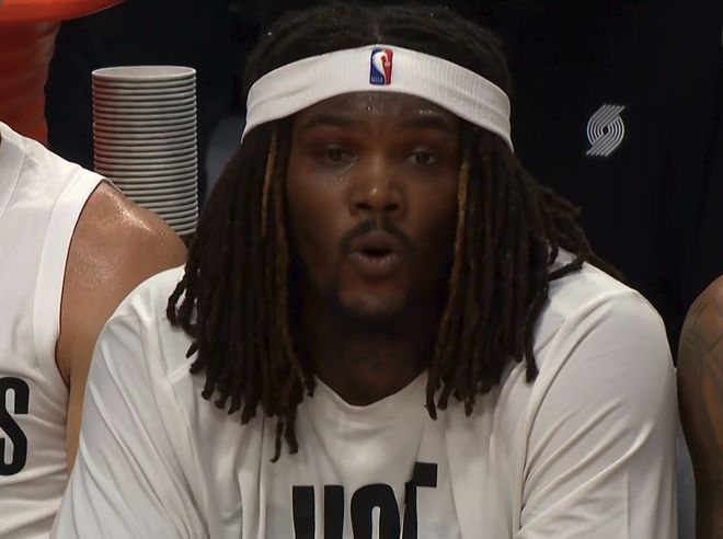 首節比賽中,當克林根被換下,開拓者主帥斯普利特選擇將羅威拿上場,楊瀚森繼續在替補席等待機會。羅威出場后完成2次扣籃,展現自己的身體天賦。第一節開拓者6-12的開局,叫暫停后卡馬拉命中3分。此后卡馬拉再進3分,幫助開拓者反超,格蘭特也進,開拓者逐漸掌握主動。